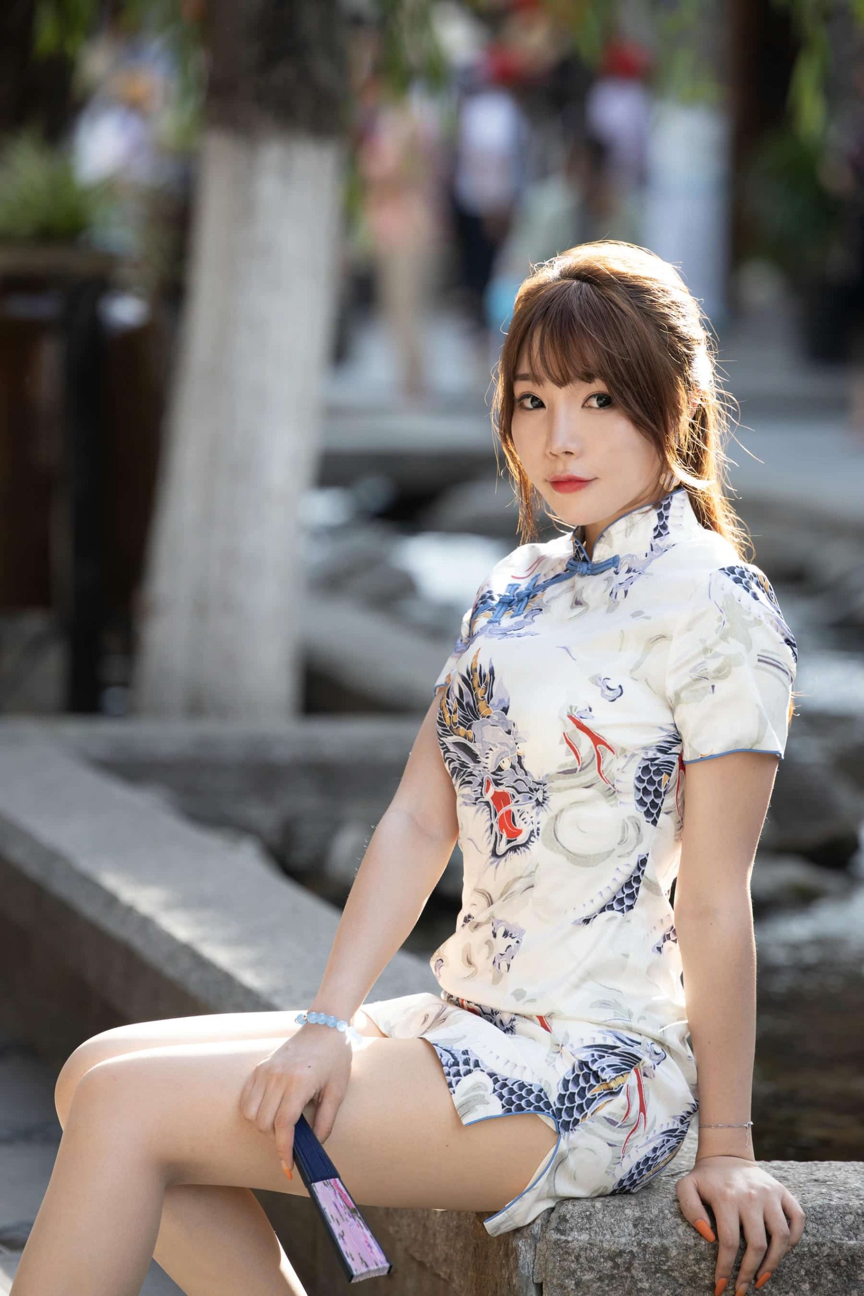 本辑「魔镜街拍」带来芝芝的「小城谣」主题作品。她身着一袭青花瓷旗袍,手持折扇,漫步于中式古建筑街道,或倚靠石砌水池,或静坐于垂柳石阶。将古典韵味与现代街拍时尚完美融合,在闲适的氛围中演绎出一段古风意境。全套资源包含275张高清图片及1部视频,容量6GB,为您呈现旗袍美人的优雅风姿。